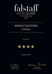 Das Weingut Kusterer ist im aktuellen Eichelmann 2026 als "weltklasse Weingut" ausgezeichnet. Folgende Weine wurden bewertet: 90 - 2024 Esslinger GrauburgunderFür den gesamten Bucheintrag bitte hier klicken. |